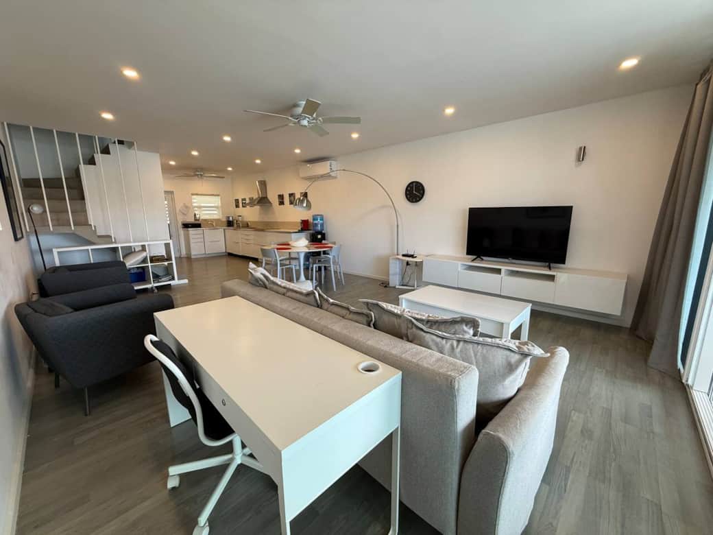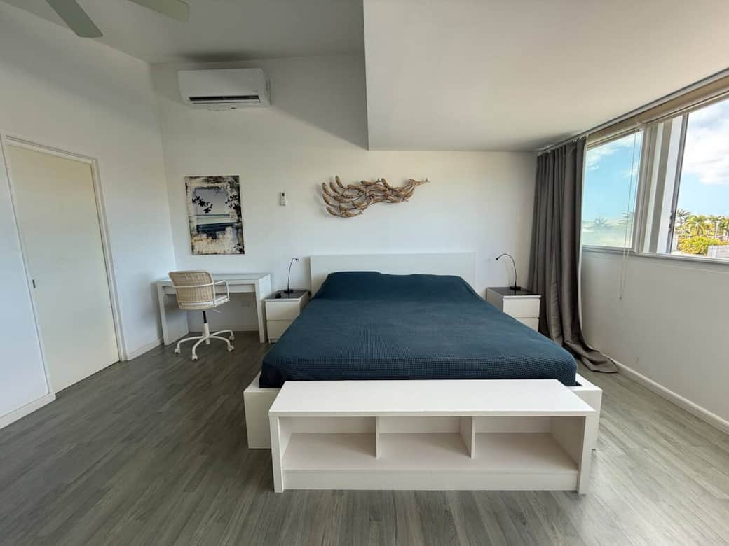 Air conditioning, Ceiling fans, Heating available
