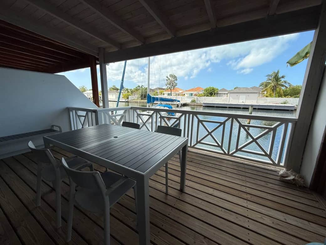 Luxury waterfront villa is a beautiful villa with 2 bedrooms each with a private bathroom, a dining room with a modern open kitchen with all supplies, a small bathroom, a laundry room and a splendid water view dock. The villa has just been completely renovated with modern and valuable supplies. It is located within the North Finger of Jolly Harbor complex 5 minutes from one of the most beautiful beaches of Antigua, within the complex you will find a market, restaurants and Golf Cart rental.